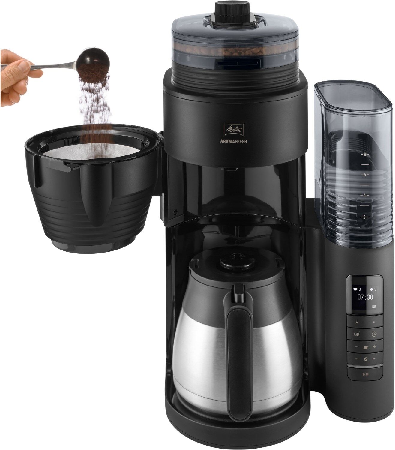- Melitta® AromaFresh Therm Pro Filterkaffeemaschine mit Mahlwerk