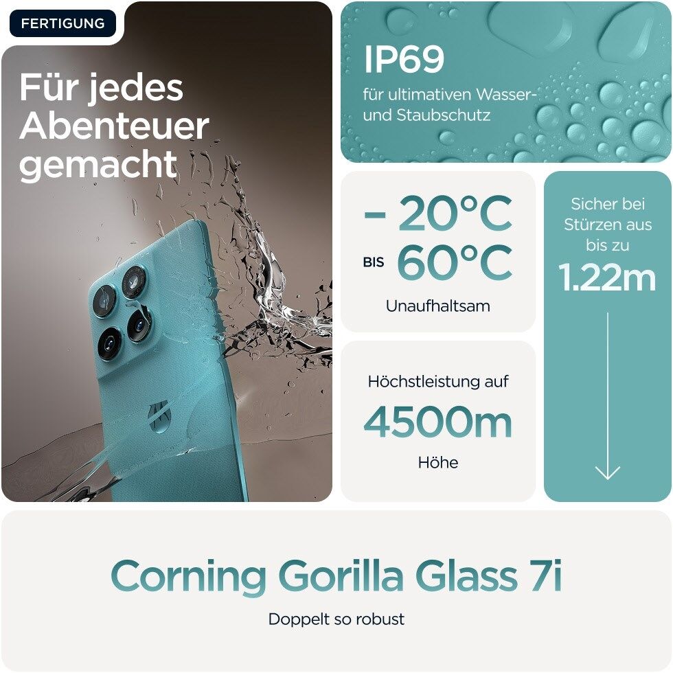 Die Leistung von Gorilla® Glass 7i basiert auf Labortests unter kontrollierten Bedingungen. Die tatsächliche Leistung kann je nach Verwendungszweck, Umgebungsbedingungen und anderen Faktoren variieren. Gorilla® Glass 7i wurde entwickelt, um die Haltbarkeit zu erhöhen und im Vergleich zu konkurrierendem Lithium-Aluminosilikat-Glas eine bessere Widerstandsfähigkeit bei Stürzen und Kratzern zu bieten, aber es ist nicht unzerstörbar und kann unter bestimmten Bedingungen trotzdem beschädigt werden. Benutzer sollten vorsichtig sein und ihre Geräte nicht unnötigen Risiken aussetzen.