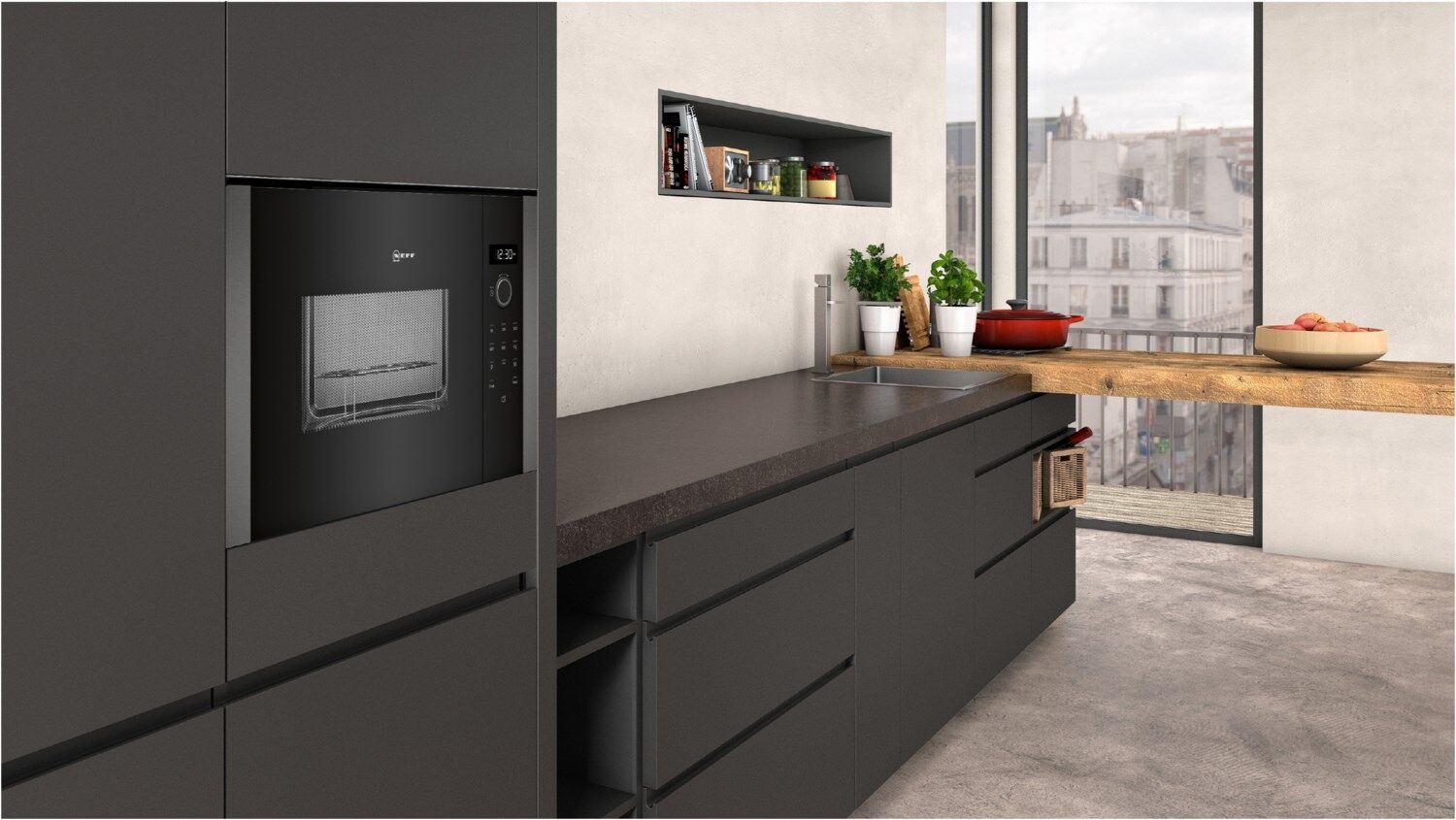 - Einbau-Mikrowelle mit Heißluftfunktion mit den Heizarten: Mikrowelle, Heißluft, Thermogrill, Großflächengrill, Warmhalten