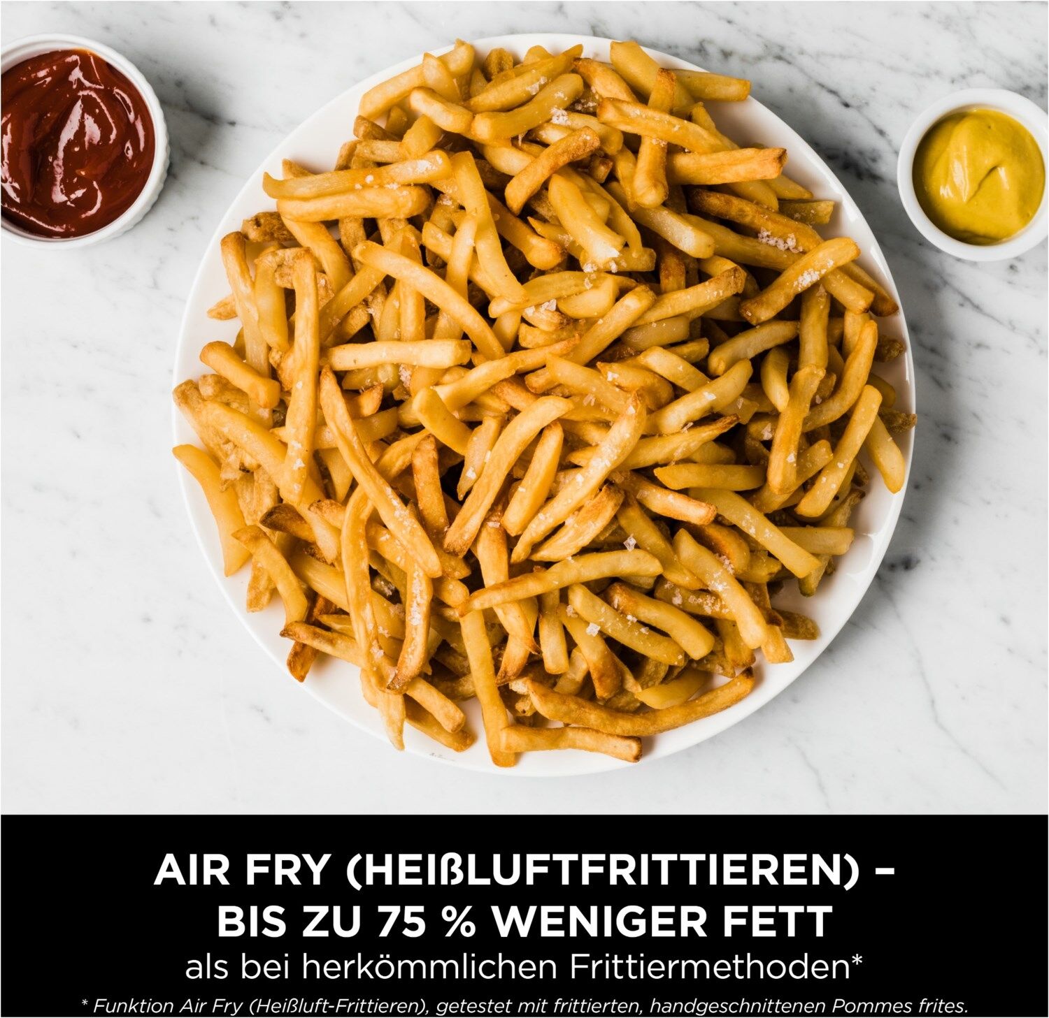Kochen Sie bis zu 75 % schneller als bei einemUmluftofen* und sparen Sie bis zu 75 % Ihrer Stromrechnung**. Heißluft-Frittieren für ein knuspriges Ergebnis mit wenig bis gar keinem Öl - bis zu 75 % weniger Fett***.