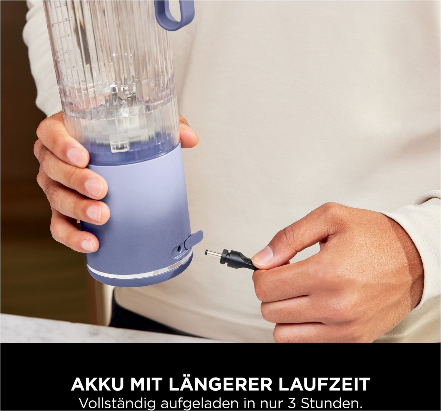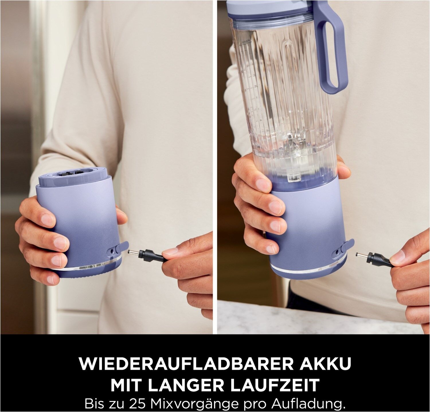 - Lange Akkulaufzeit: Mixen Sie unterwegs – bis zu 25 Mixvorgänge pro Aufladung