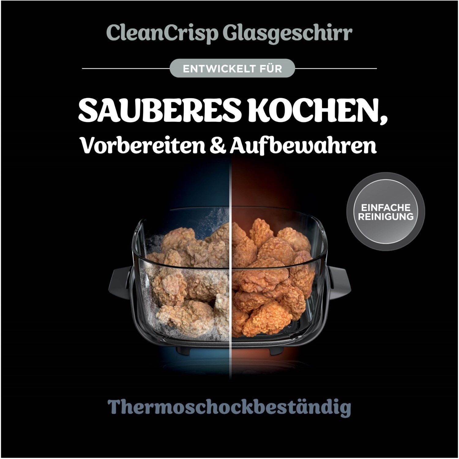 - Zuverlässiges Kochen ohne PFAS*: mit CleanCrisp-Glasbehältern zum Kochen und Aufbewahren