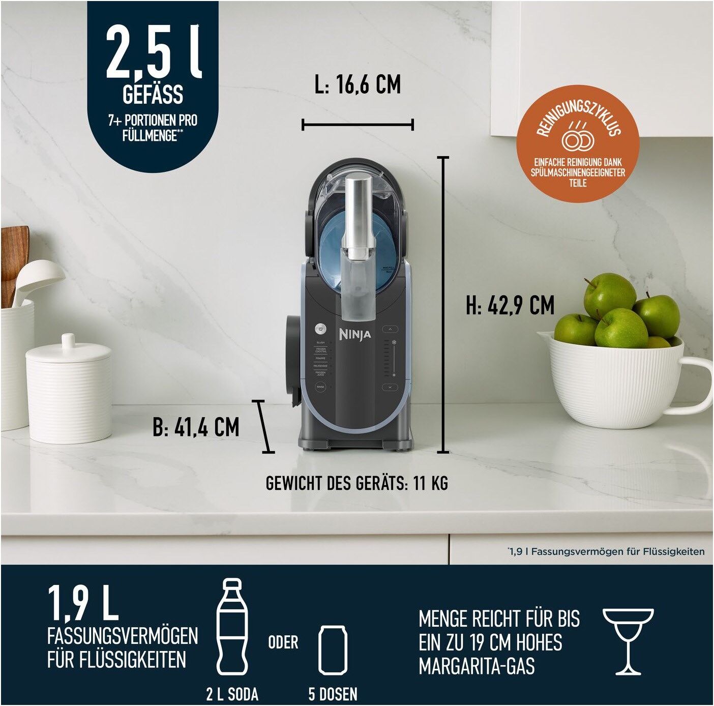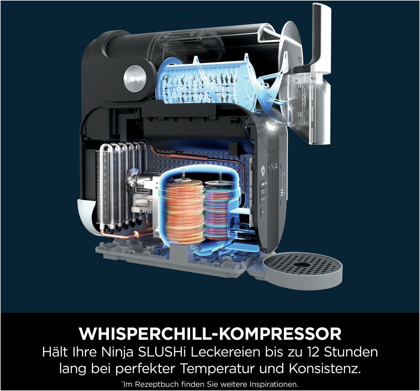 • Frozen Juice (Frozen Saft): für natürlich gesüßte Fruchtsäfte und zur Zubereitung von Super-Smoothies Eiskaltes Vergnügen mit der ganzen Familie oder Freunden Das Easy-Fill-Gefäß mit 2,5 Litern*** Fassungsvermögen sorgt für Nachschub ohne Ende und reicht für mindestens 7 Portionen**** pro Durchgang. Flüsterleise Kühlung Der WhisperChill-Kompressor von Ninja SLUSHi hält Getränke leise auf der perfekten Temperatur – so bleibt der Spaß ungestört und die Entspannung garantiert!