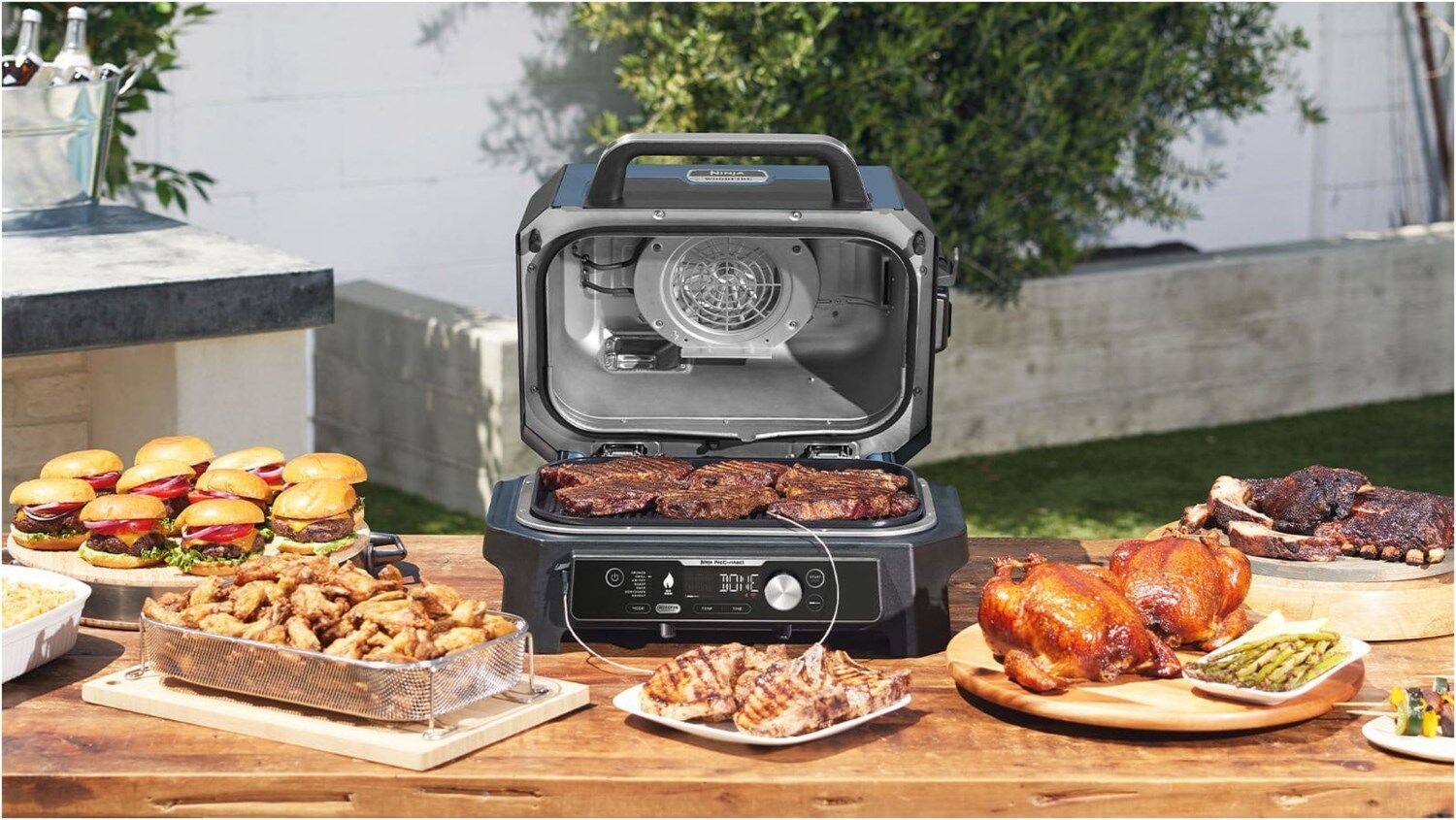 Die hochwertigen Materialien des Ninja Woodfire Grills sind für den Einsatz im Freien und das ganzjährige Grillen ausgelegt. Wasserdicht nach IPX4.