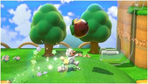 - Kampf der Titanen: Mit der Macht der Giga-Glocke verwandelt sich Mario in Giga-Katzen-Mario: Als Löwe kann er nun noch mal stärker die Tatzen gegen Bowser schwingen.