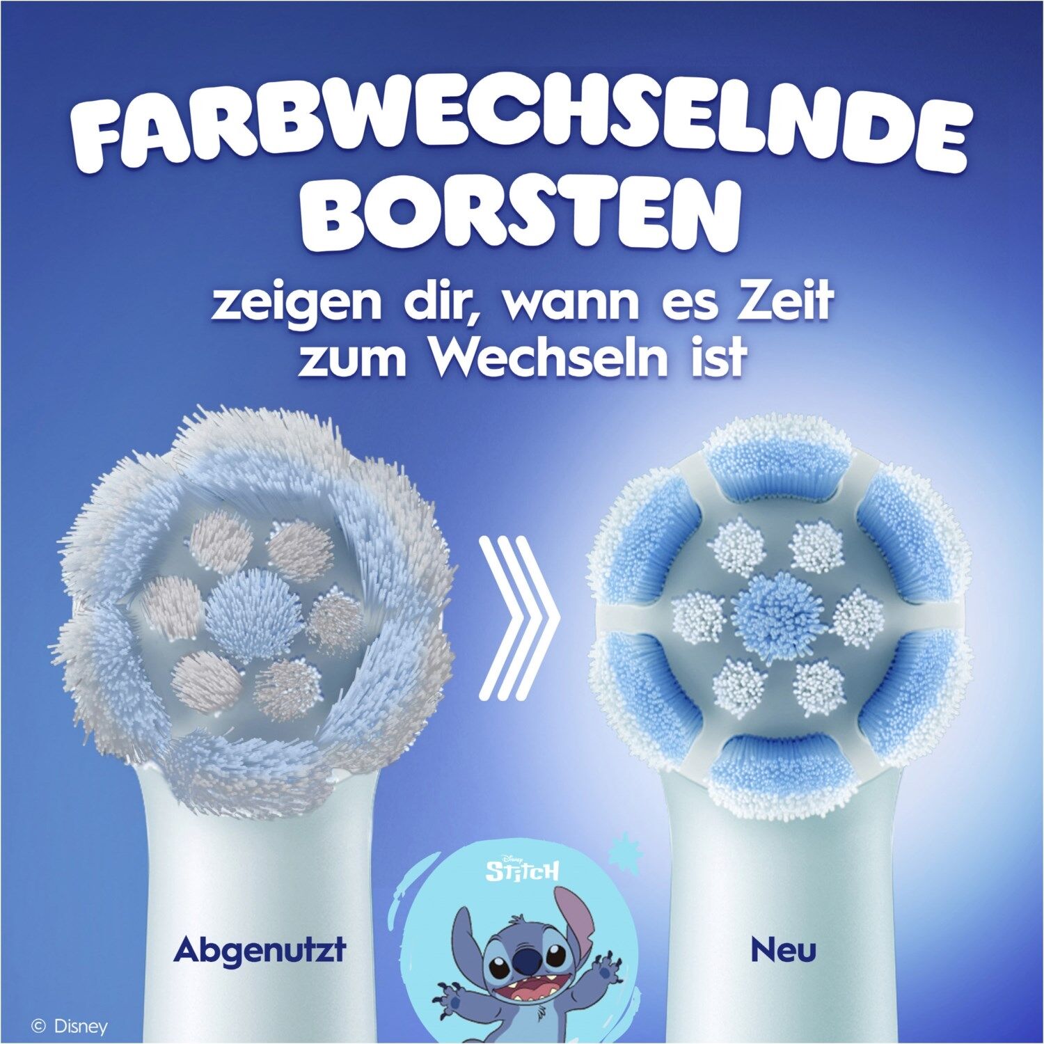 Die Oral-B iO Kids 6+ Aufsteckbürste bietet Kindern den Spaß mit Stitch und die sanfte, effektive Reinigung einer von ZahnärztInnen empfohlenen Oral-B Zahnbürste.