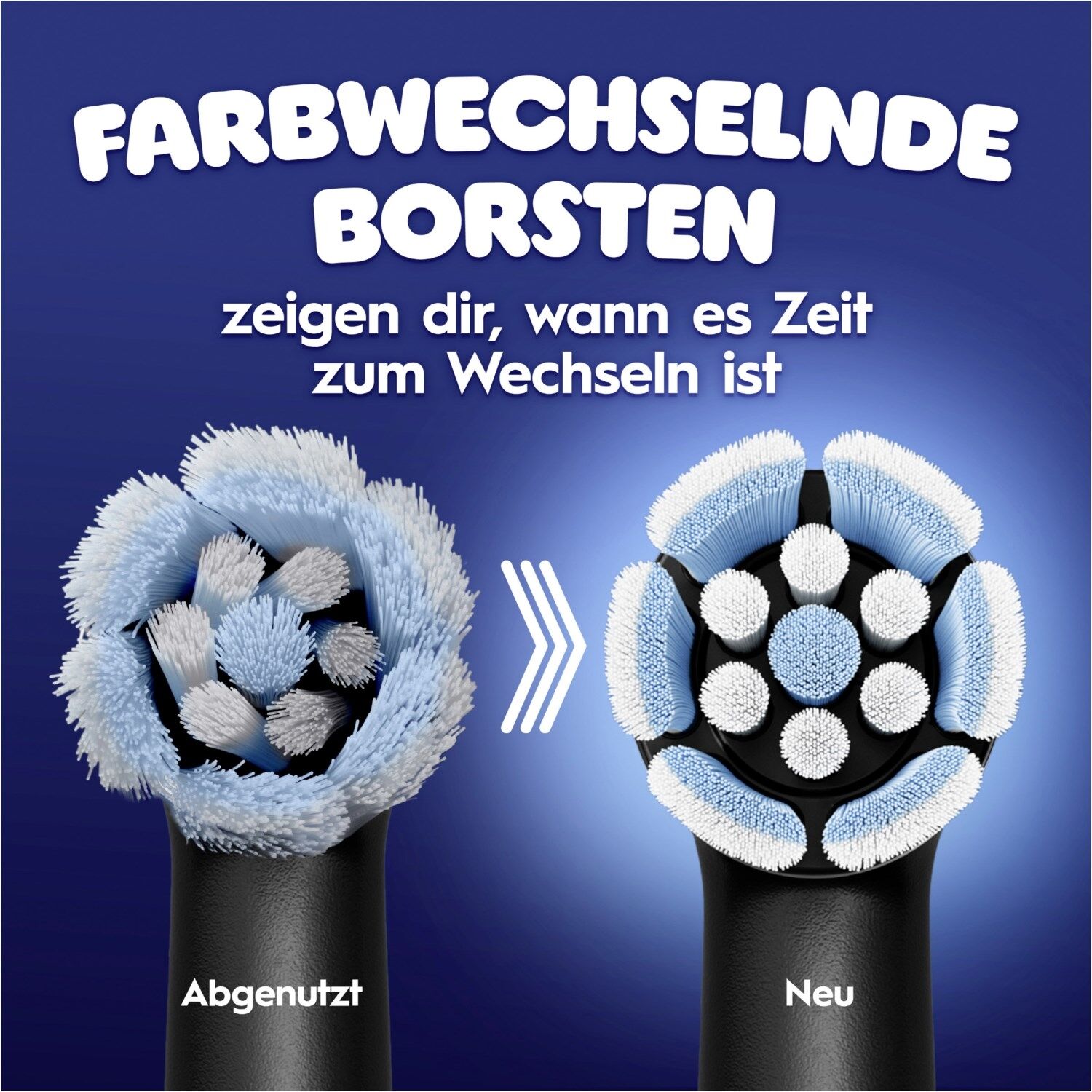 - Farbwechselnde Borsten ändern die Farbe von blau zu weiß, wenn die Aufsteckbürste gewechselt werden sollte