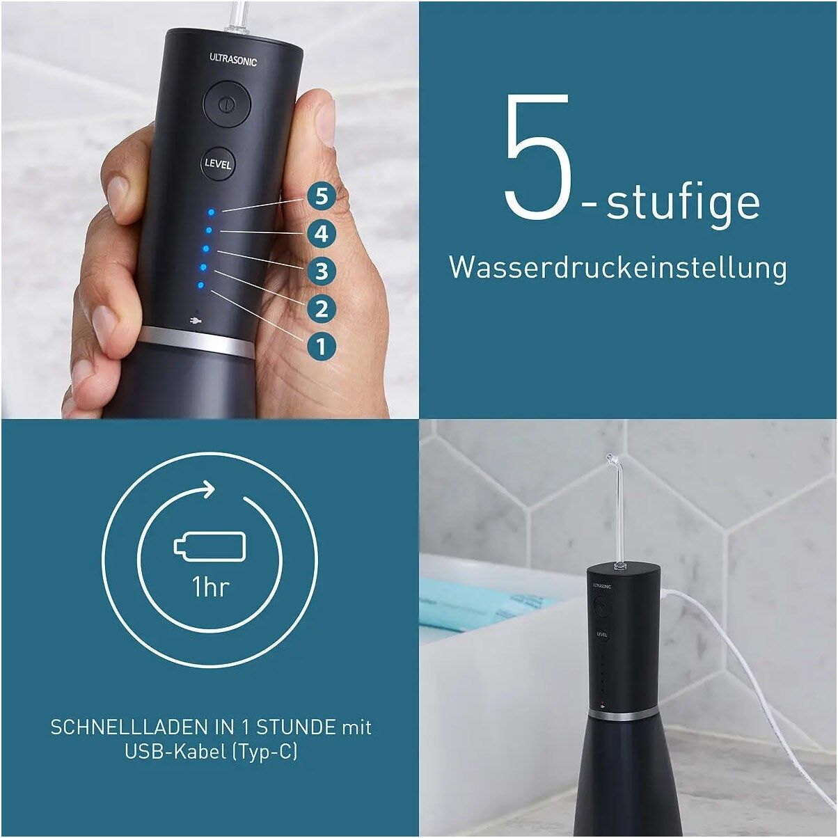 - 5 einstellbare Wasserdruckstufen