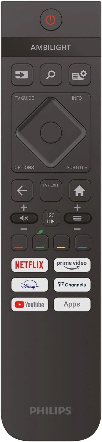 Dieser Ambilight TV hat einen schlichten und dezenten Look. Sie können Ambilight als sofortige Stimmungsbeleuchtung verwenden, wenn der Fernseher ausgeschaltet ist. Die TV-Fernbedienung besteht aus recyceltem Kunststoff, unsere Verpackung besteht aus FSC-zertifiziertem recyceltem Karton und die Beilagen werden auf Recyclingpapier gedruckt.