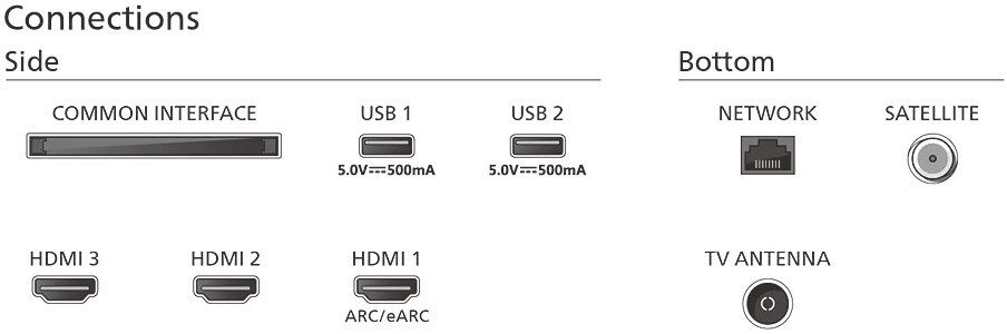 - DVB-T2/-C/-S2 Triple Tuner, 3x HDMI, HDMI 2.1, 2x USB, CI+, Ethernet-LAN, WiFi 802.11n, 2 x 2, Singleband integriert