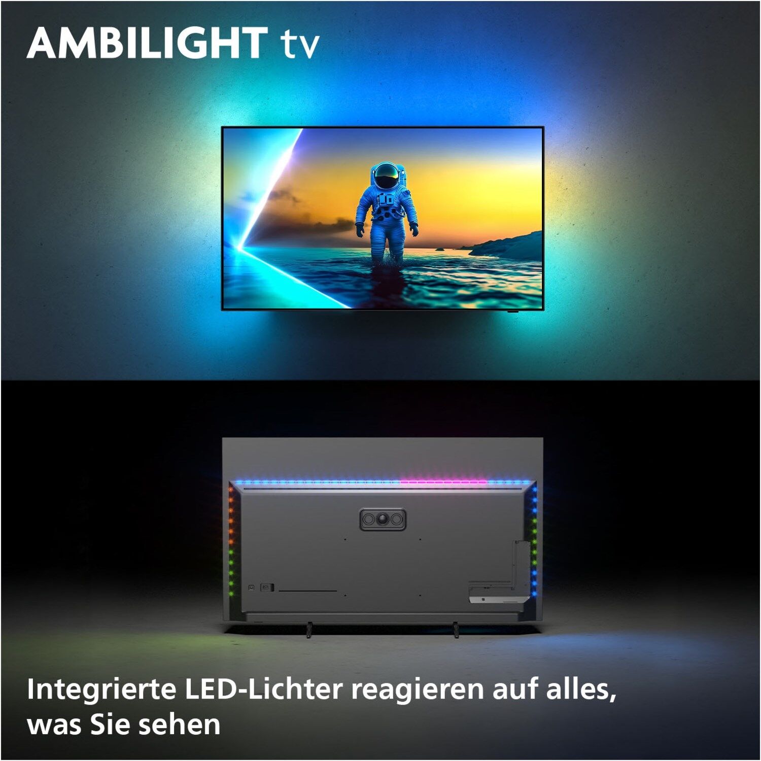 Dieser beeindruckende OLED Ambilight TV entfaltet seine ganze Schönheit. Vom minimalistischen Design und lebensechten Bild bis hin zum überraschenden Sound wie im Kino werden Sie gefesselt sein. Das immersive Leuchten von Ambilight lässt alles größer erscheinen und sorgt für noch mehr Spaß und Wow-Effekte!