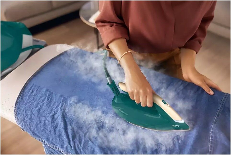Starker, gleichmäßiger Dampfausstoß für effizientes Glätten von selbst hartnäckigen Falten auf dicken Stoffen.