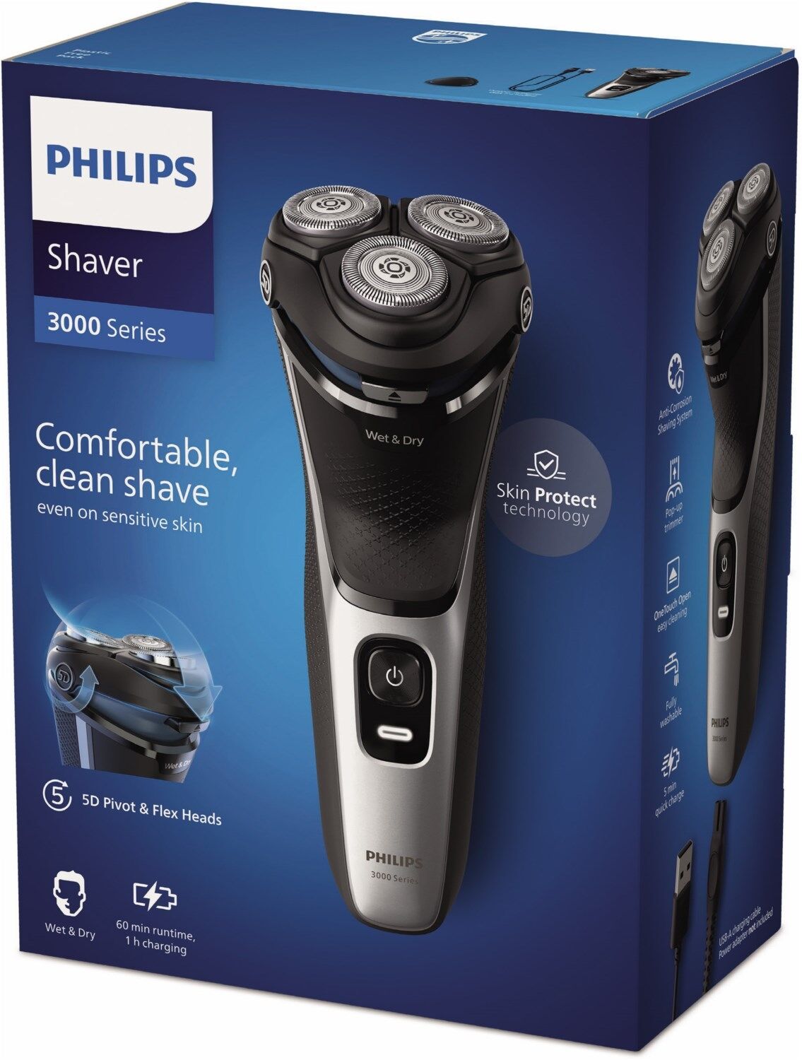 Der elektrische Nass- und Trockenrasierer der 3000er Serie von Philips bietet Ihnen eine komfortable und saubere Rasur, selbst bei empfindlicher Haut. 5-dimensional bewegl. Flex-Scherköpfe, 27 selbstschärfende PowerCut Klingen sowie Nass- und Trockenrasur sorgen stets für ausgezeichnete und zuverlässige Ergebnisse.