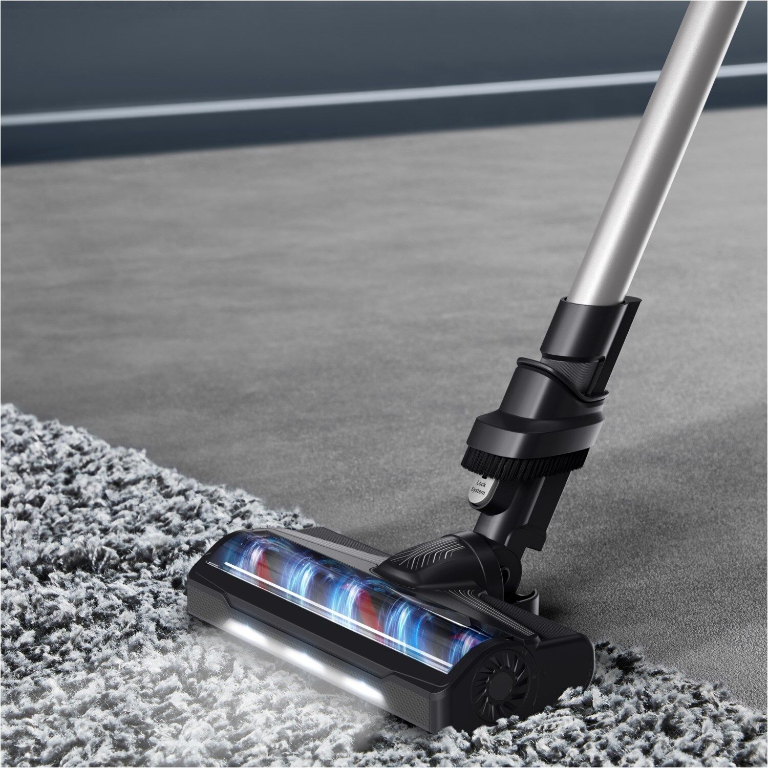 Der leistungsstarke 140-W Motor sorgt zusammen mit der Hochleistungs-LED-Bodendüse für eine gründliche Reinigung aller Böden, Teppiche und Vorleger.