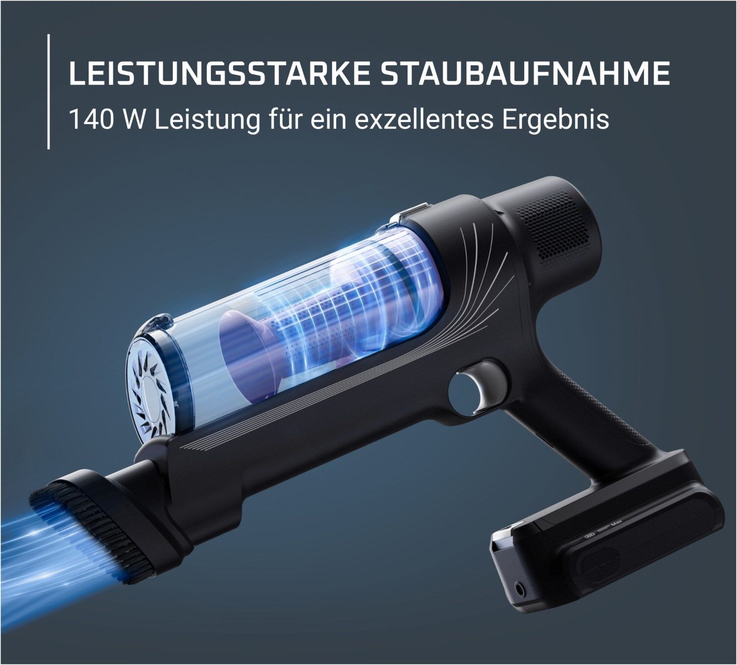 - LEISTUNGSSTARKE STAUBAUFNAHME: Akkustaubsauger mit 140 W Leistung für ein makelloses Zuhause, das sich durch die Tiefenreinigung vom Boden bis zur Decke und auf allen Oberflächen leicht reinigen lässt