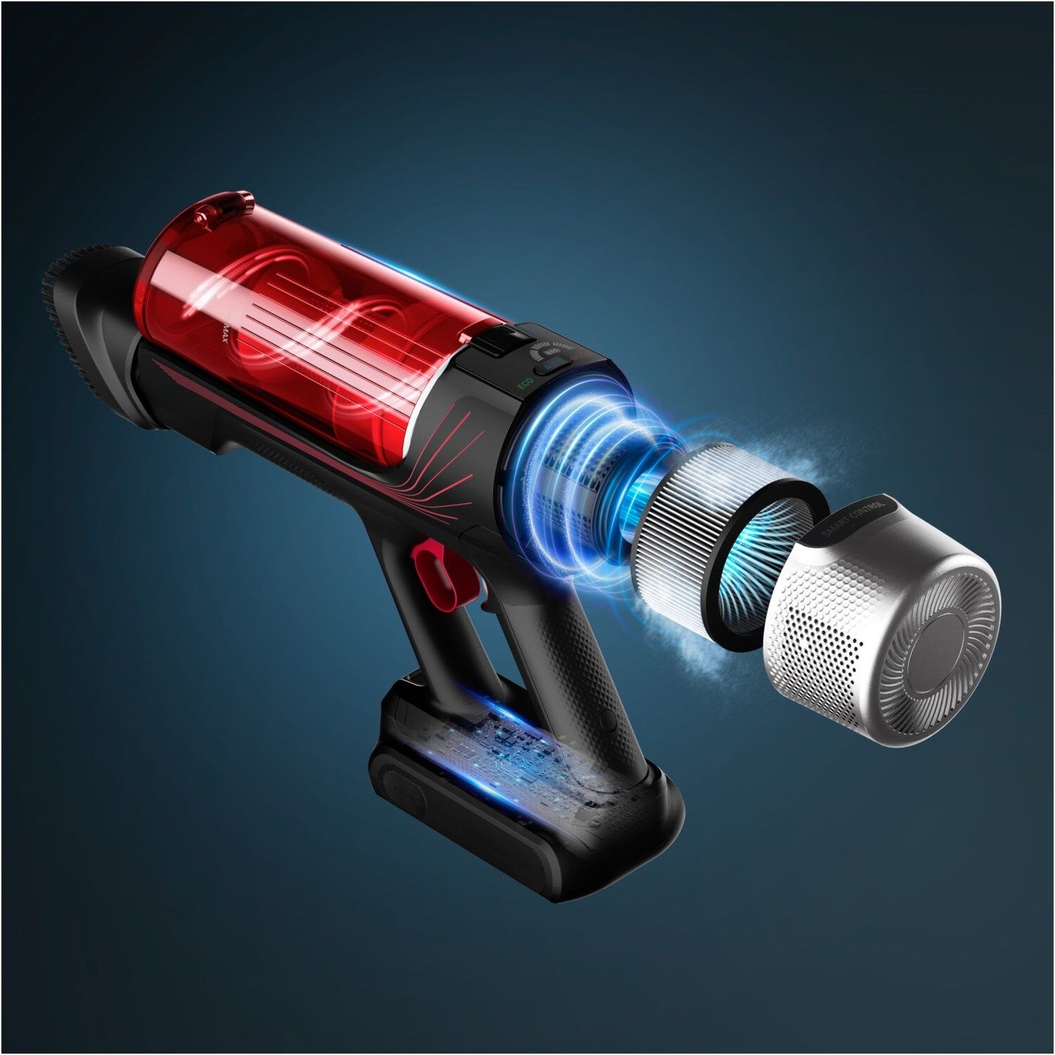 - Integrierte Möbelbürste (Handstaubsaugen mit 1 Klick), Smartes Display mit Kontrollanzeige in Echtzeit (für verbleibenden Laufzeit und Filterreinigungswarnung sowie Leistungsstufe und Boost-Auslöser)