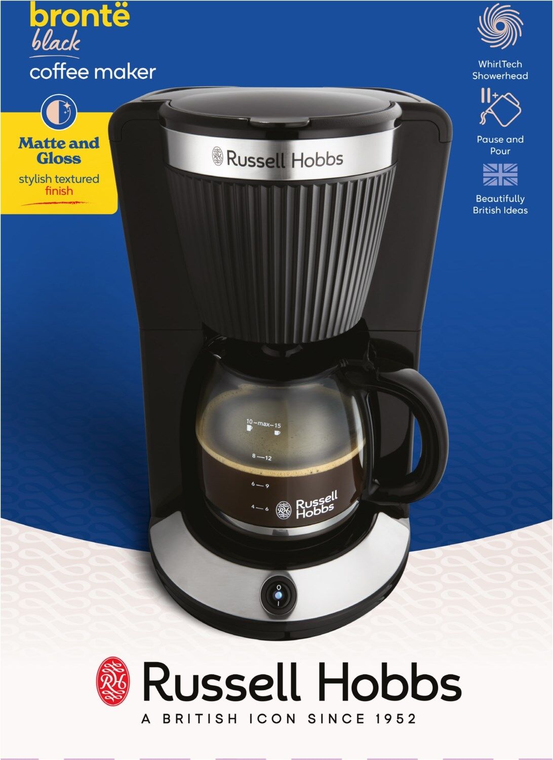 Als Teil der Brontë Serie ist die Filterkaffeemaschine zusammen mit dem passenden Wasserkocher und dem Toaster für ein harmonisches Set erhältlich.