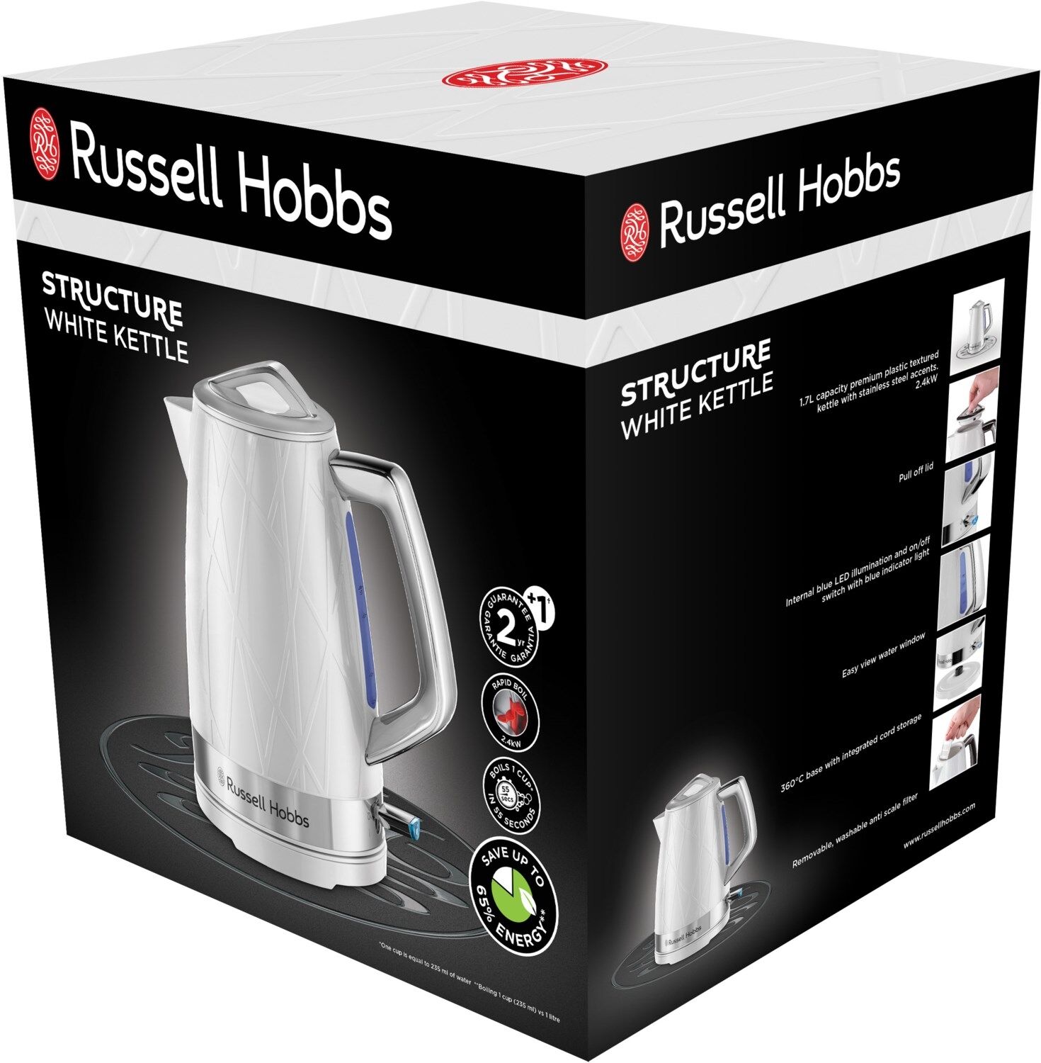 Heißes Wasser für den schnellen Teegenuß: Eine wärmende Tasse Tee ist wie Balsam für die Seele. Der Structure Wasserkocher sorgt für eine rasche Zubereitung des leckeren Heißgetränks: In nur 55 Sekunden ist eine Tasse Wasser (236 ml) erhitzt und bereit für die Teemischung. Dabei arbeitet der Wasserkocher möglichst ressourcenschonend und spart bis zu 65 % Energie*. Für die angenehme Handhabung sorgen die außenliegende Wasserstandsanzeige mit Füllmengenmarkierung und die Perfect-Pour-Ausgusstülle, die ein tropfenfreies Ausgießen ermöglicht. Das 1,7 l fassende Gerät bietet die Wahl zwischen Kochstoppautomatik und manuellem Abschalten. Die blaue Kontrollleuchte signalisiert, ob das Gerät angeschaltet ist. Dank des herausnehmbaren, waschbaren Kalkfilters ist die Reinigung ein Kinderspiel.