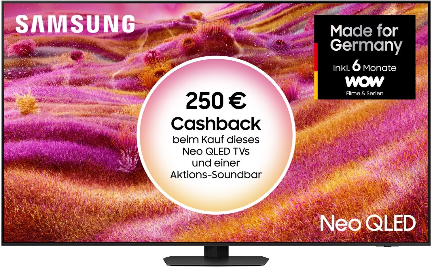 - * Aktions-TV mit -Soundbar kaufen und satten Cashback sichern. Aktionszeitraum: 19.01.2026 bis 10.05.2026. Teilnahmebedingungen, Aktionsgeräte mit länderspezifischem Modell-Code sowie modellabhängige Cashbacks unter: samsung.de/mixmatch