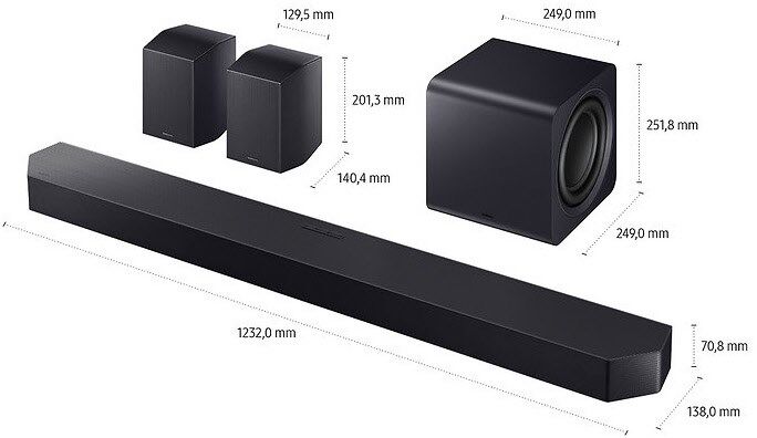 Diese Soundbar wurde für maximalen Sound-Genuss entwickelt und kombiniert drei Lautsprechertypen – von vorne abstrahlend, von der Seite abstrahlend und nach oben abstrahlend – die gezielt im Gehäuse verbaut sind. Zusätzlich dabei: ein separater Subwoofer mit zwei 8-Zoll-Einheiten sowie ein Rücklautsprecher.