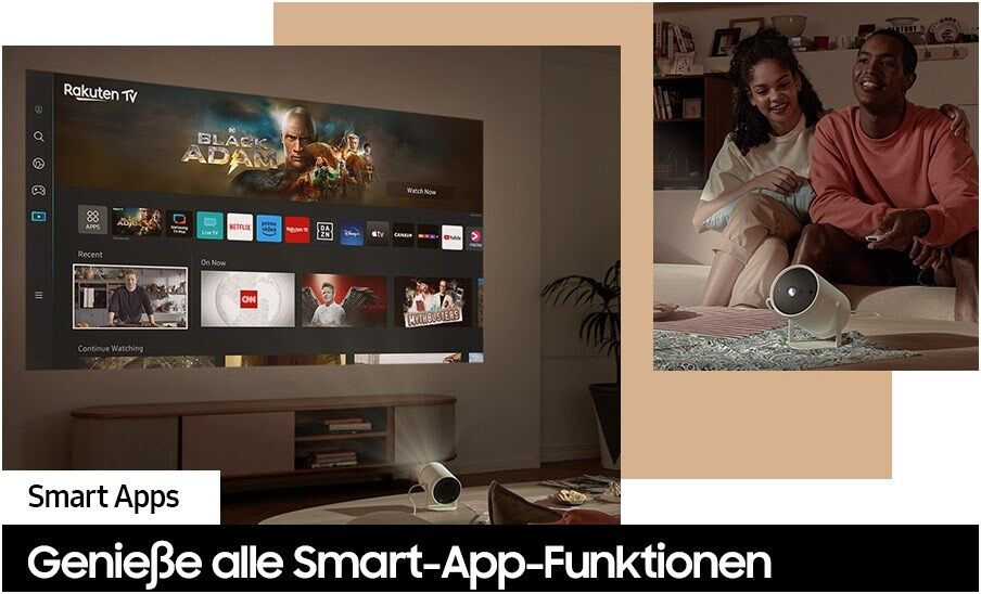 Alles, was du brauchst. Genieße mit deinem Smart Projektor alle Funktionen der Samsung Smart Apps. Dank vieler integrierter Apps, zum Beispiel von verschiedenen Streaminganbietern, steht dir mit The Freestyle die große Welt des Entertainments zur Verfügung.*