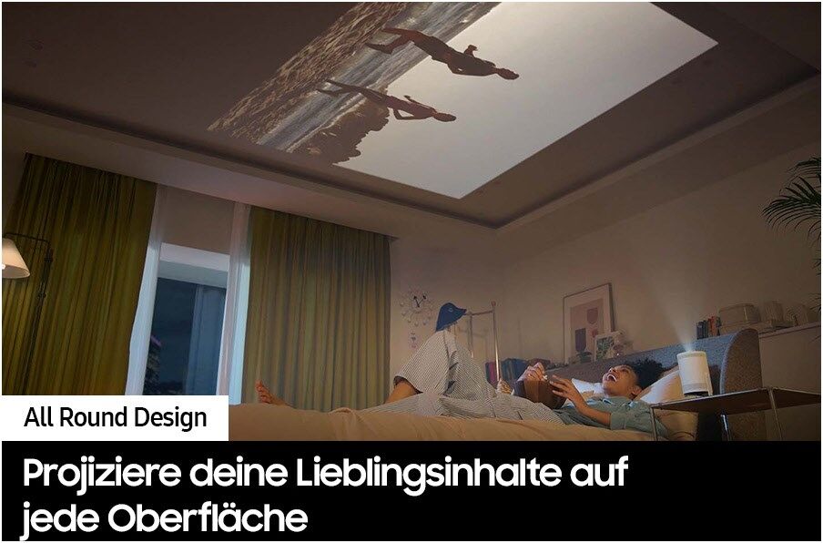 Wand oder Decke? Ganz egal. Mit dem um 180° drehbaren The Freestyle projizierst du deine Lieblingsinhalte in verschiedenen Winkeln auf jede Oberfläche. Und dank seines kompakten Designs und des 180°-Standfuß kannst du mit The Freestyle einzigartige Erlebnisse auf einer bis zu 100 Zoll großen Bildfläche genießen. Wo und wann immer du willst.