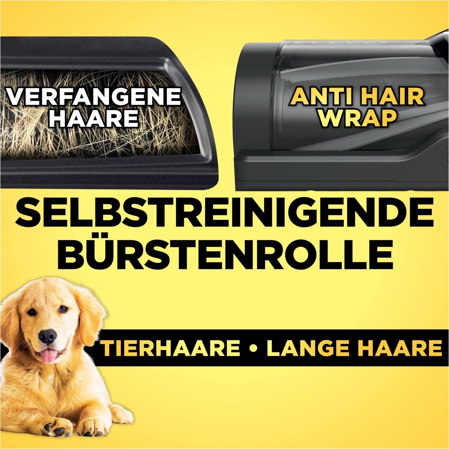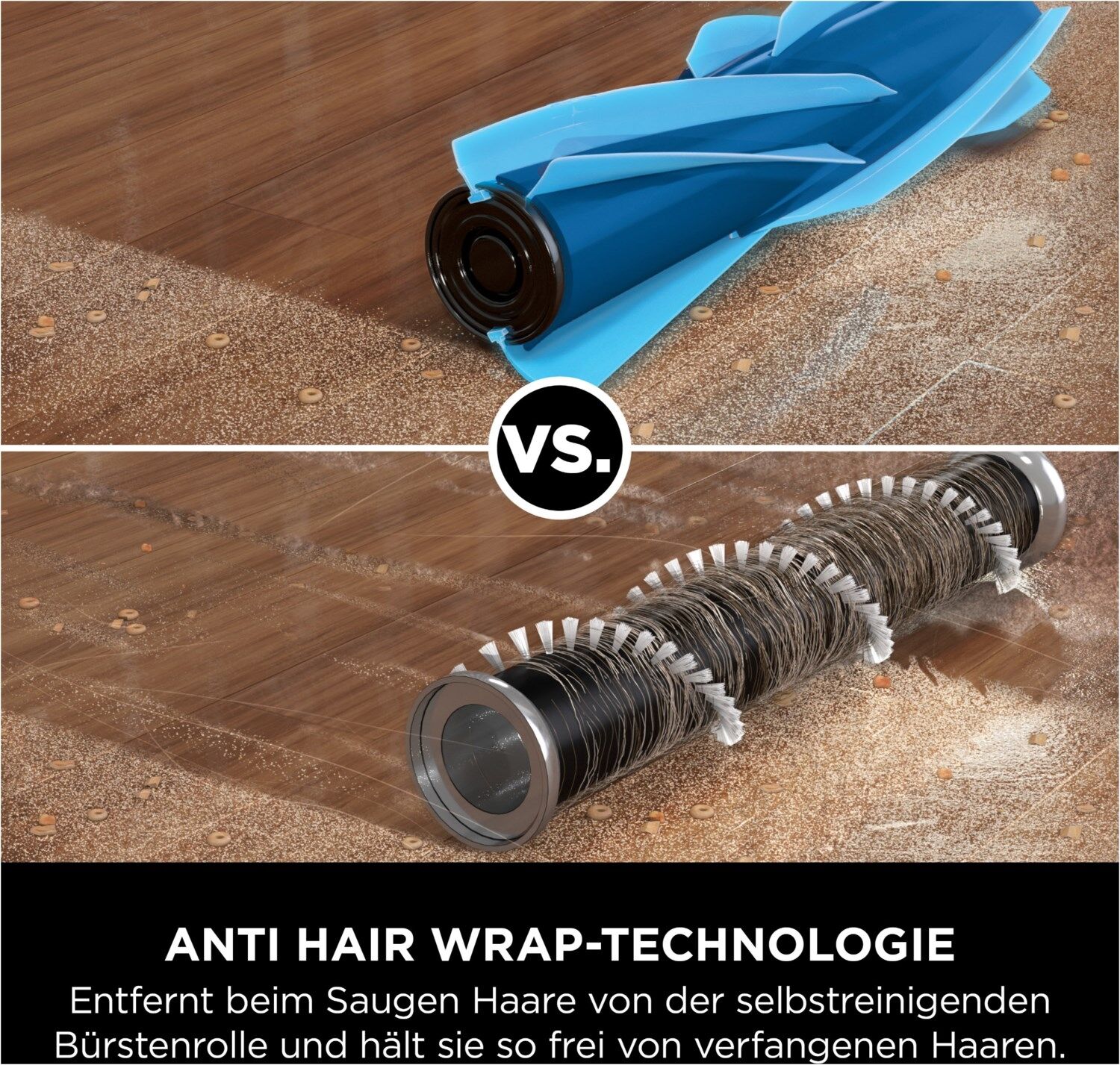 Die Anti-Hair-Wrap-Technologie entfernt während des Staubsaugens aktiv Haare von der selbstreinigenden Bürstenrolle und sorgt so dafür, dass sie sich nicht verheddert.
