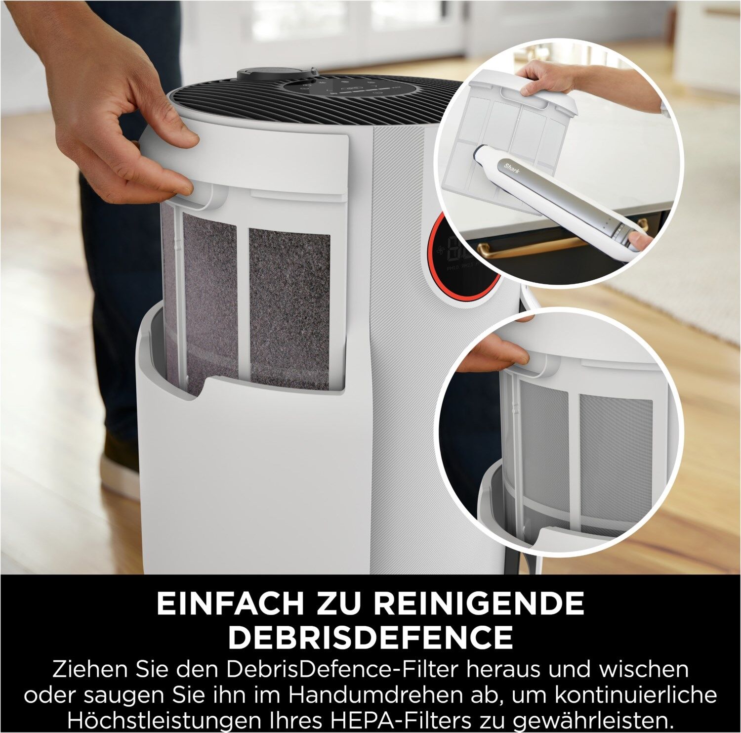 - DebrisDefence-Filter - Leicht zu reinigende Vorfilter beugen der Ansammlung von Staub, Haaren und Flusen in deinem HEPA-Filter vor
