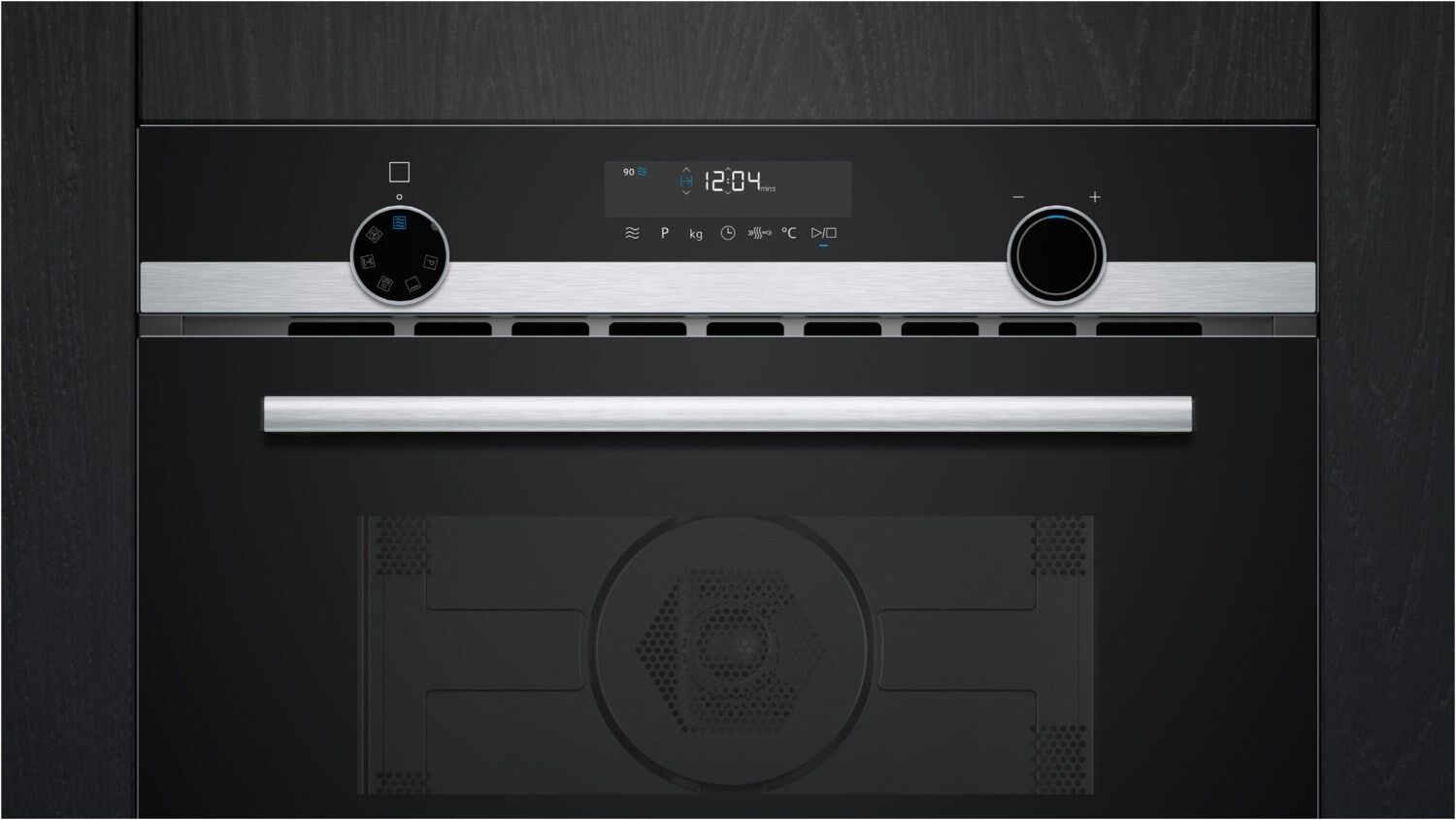 - Einbau-Mikrowelle mit Heißluftfunktion mit den Heizarten: Mikrowelle, Heißluft, Umluftgrill, Großflächengrill, Warmhalten