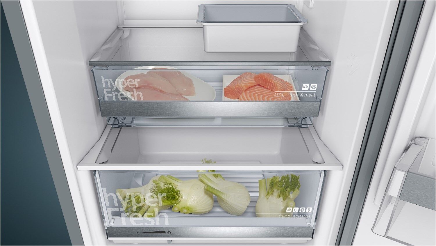 - Obst und Gemüse bleiben in der hyperFresh Schublade dank Feuchtigkeitsregler länger frisch