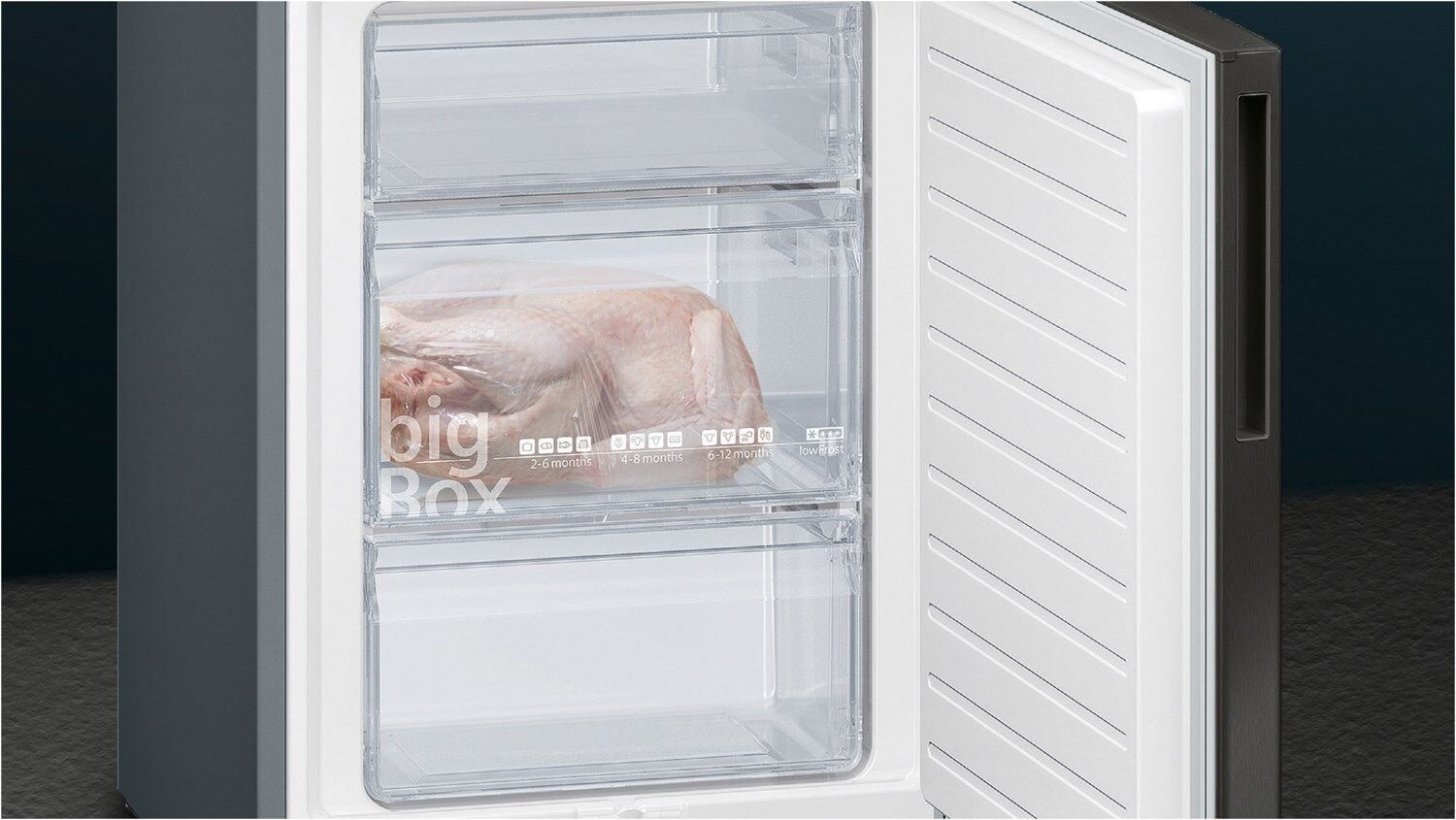 - Viel Platz bietet die bigBox um großes Gefriergut optimal zu lagern und zu stapeln.