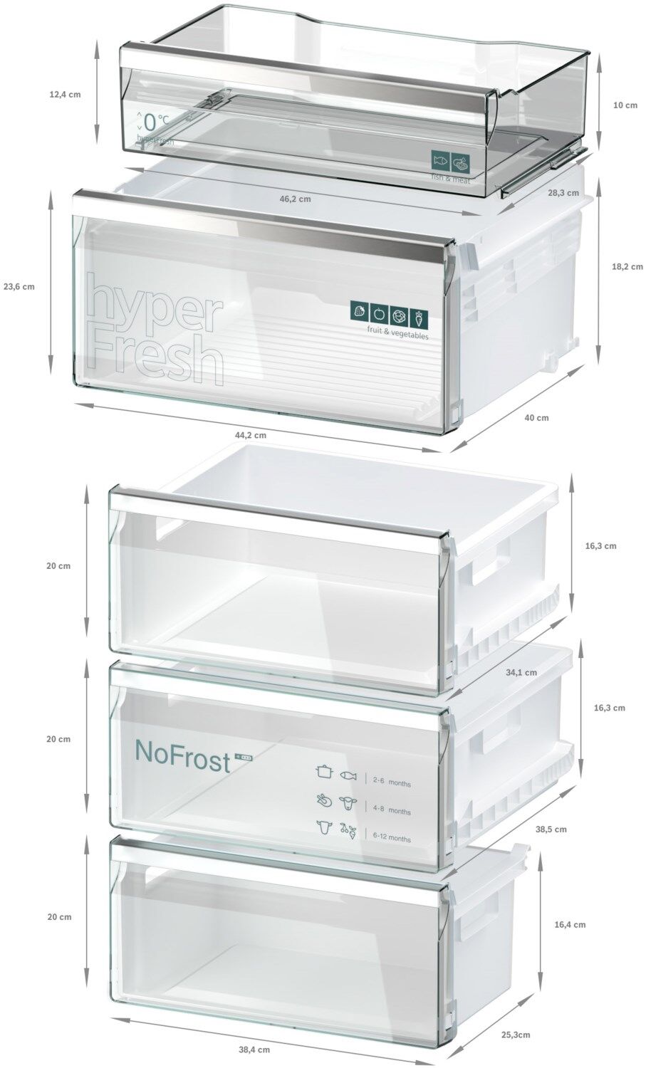 - 3 transparente Gefriergut- Schubladen