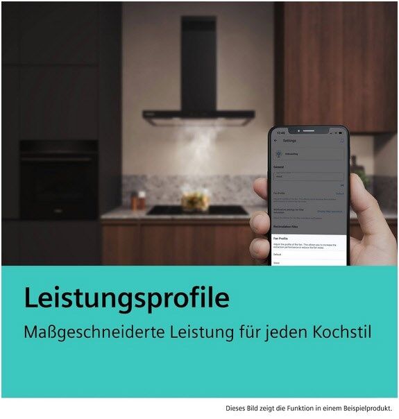- Leistungsprofile: Wähle in der Home Connect App zwischen Standard, Leistung oder Leise, um die Lüfterleistung zu erhöhen oder das Geräusch zu reduzieren.