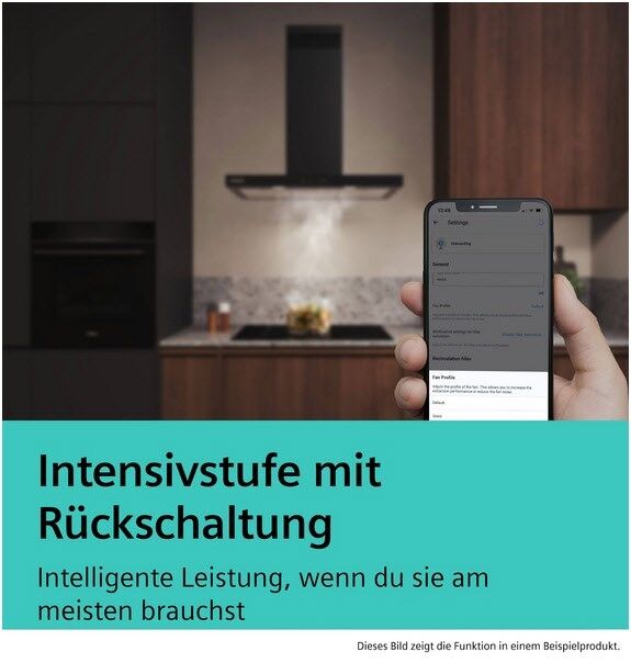 - Sättigungsanzeige, Einstell- und Rücksetzfunktion für Fettfilter und Geruchsfilter über Home Connect App verfügbar.