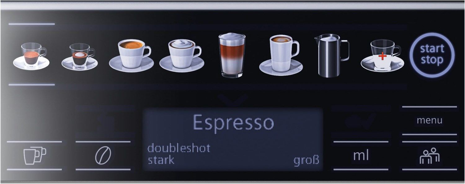 - coffeeSelect Display: Durch leichtes Berühren der Sensorfelder können Kaffee- und Milchspezialitäten direkt angewählt und zubereitet werden