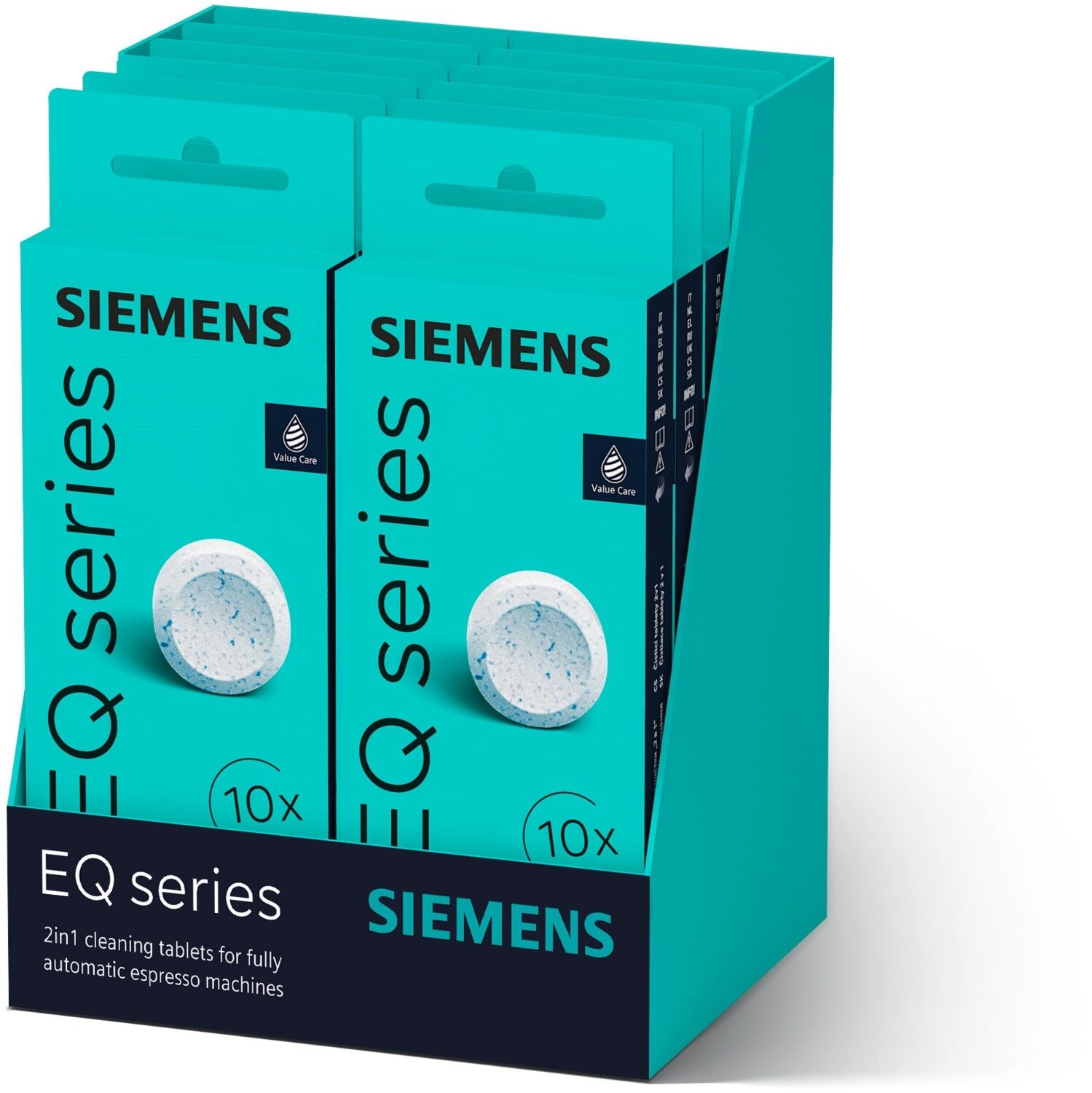 2in1: Für bestes Aroma + langes Geräteleben. Längere Geräte-Lebensdauer dank optimaler Entfernung von Kaffeeölen aus der Brüheinheit. Optimiert für das automatische Reinigungsprogramm von Siemens Kaffeevollautomaten. Geeignet für alle Kaffeevollautomaten der EQ Reihe, sowie Einbauvollautomaten. Geeignet für alle Kaffeevollautomaten der surpresso Reihe. Inhalt: 10 Reinigungstabletten