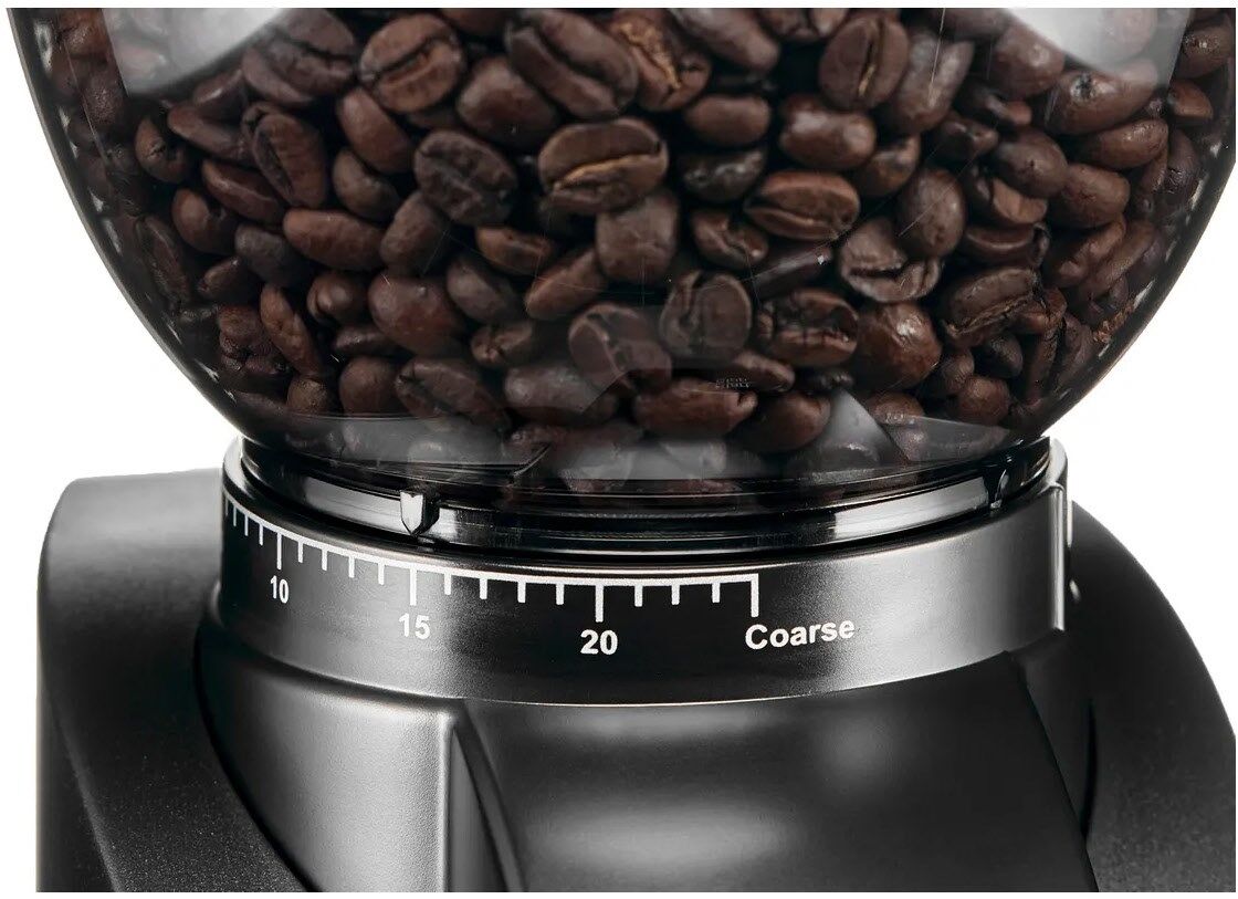 Die Mühle Solis Scala Zero Static verfügt außerdem über 24 verschiedene Mahlgradeinstellungen und Mahlkegel aus gehärtetem Edelstahl, mit denen ganze Kaffeebohnen mühelos gemahlen werden können.