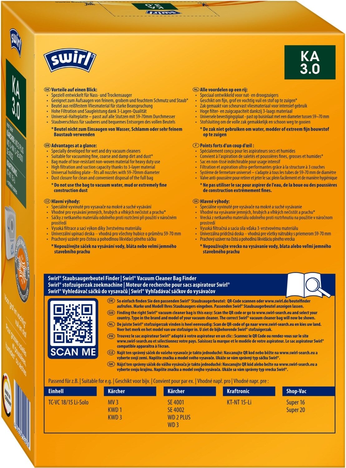 - Geeignet zum Aufsaugen von feinem, grobem und feuchtem Schmutz und Staub