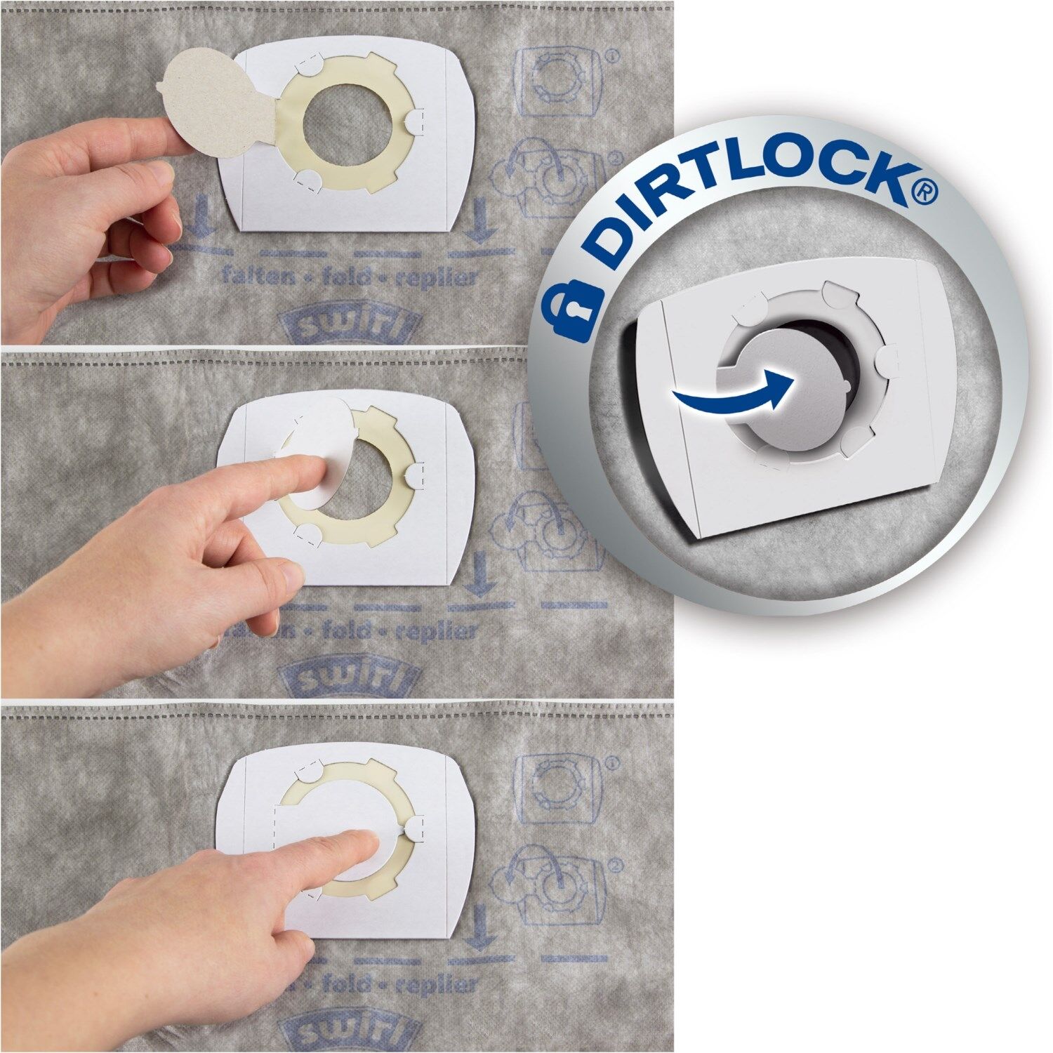 - Sauberes und bequemes Entsorgen des vollen Beutels mit Hilfe eines leicht verschließbaren Staubverschlusses