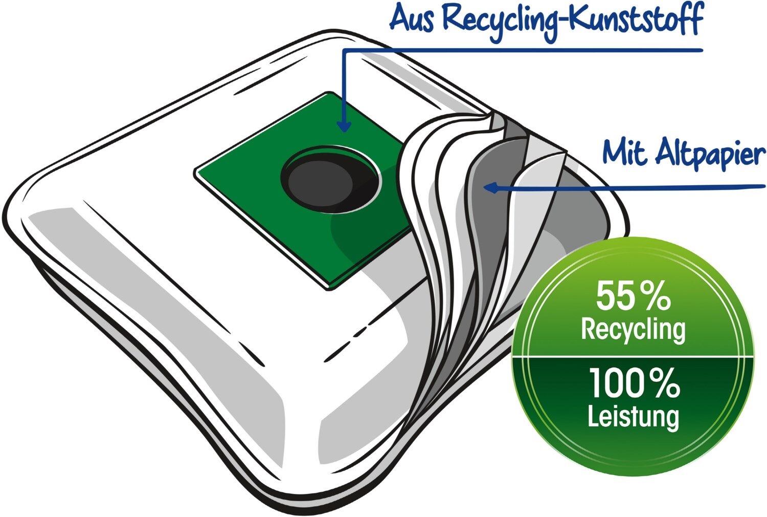 Weil uns die Umwelt am Herzen liegt, setzen wir bei der Produktion dieses Swirl® Staubsaugerbeutels auf die Verwendung von 60% Recyclingmaterial.