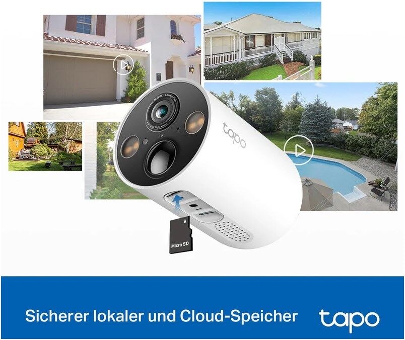 - Sicherer lokaler und Cloud-Speicher - Speichern Sie aufgezeichnete Videos auf einer microSD-Karte (bis zu 512 GB) oder über den Tapo Care Cloud-Speicherdienst
