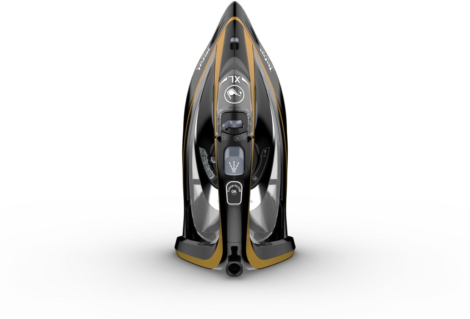 Der brandneue Micro-Calc-Filter verhindert, dass sich Kalk-Rückstände oder -Flecken beim Bügeln bilden, während eine variable Dampfleistung von bis zu 60 g/Min. für hohe Effizienz sorgt und ein besonders starker Dampfstoß von 260 g/Min. selbst hartnäckigste Falten beseitigt.