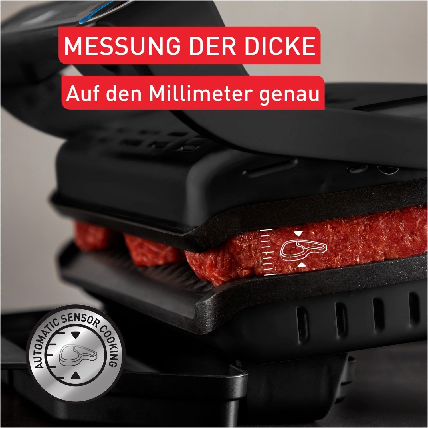 - Automatische Anpassung der Grilltemperatur und Grillzyklen je nach Dicke und Art des Grillguts, Garzustand des Fleisches per Lichtindikator
