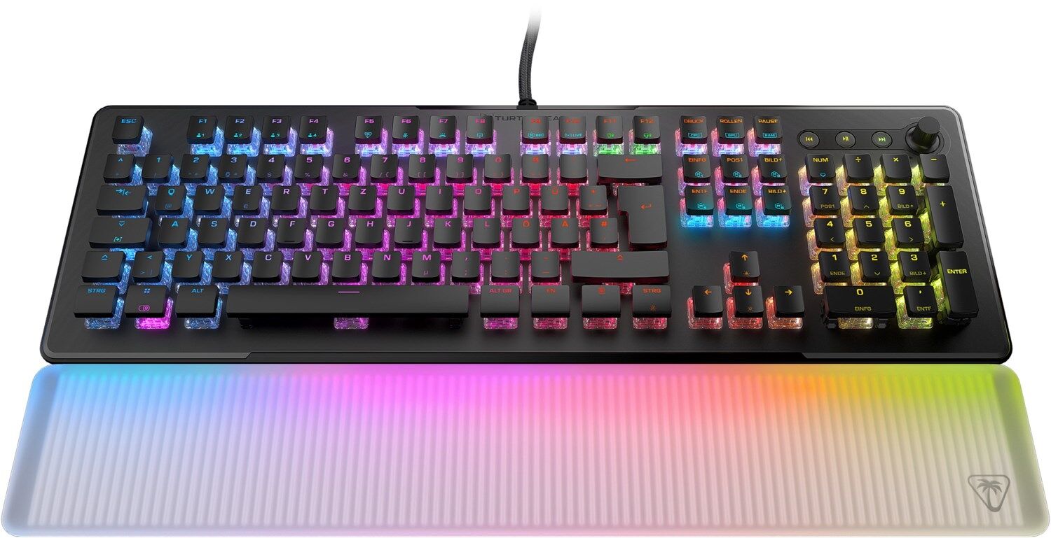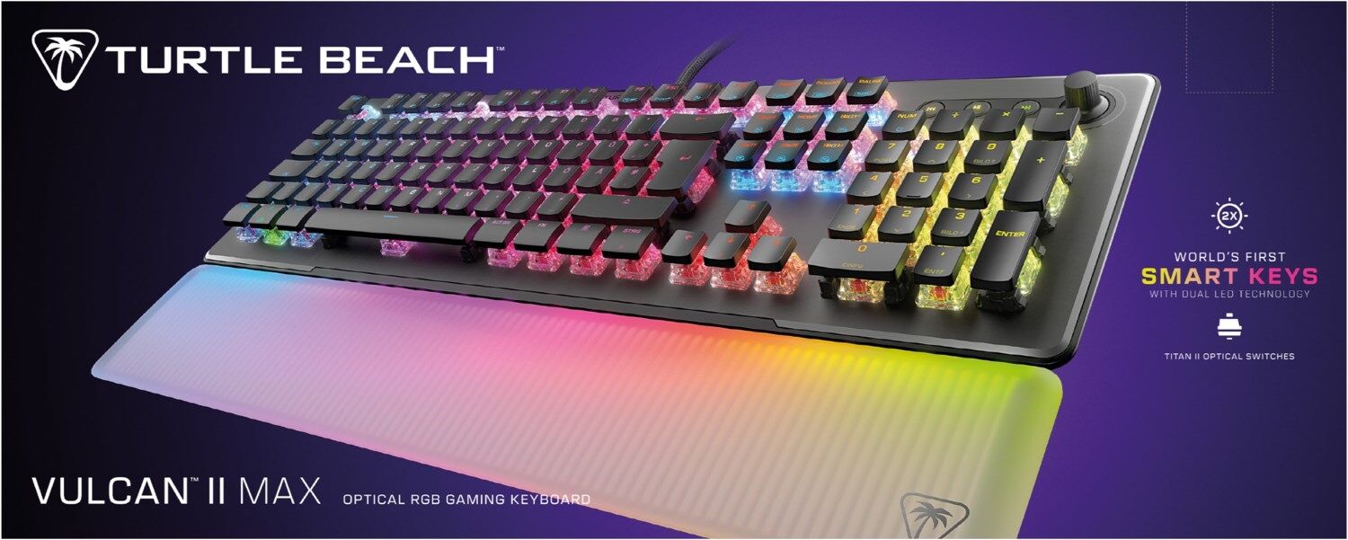 Die optisch-mechanische Gaming-Tastatur Vulcan II Max vereint Haltbarkeit, Leistung und Funktionalität in einem schillernden RGB-Design. Die exklusiven optischen TITAN II-Schalter verfügen über eine sanfte, hyperschnelle Betätigung, vorgeölte Stabilisatoren und eine unglaubliche Haltbarkeit mit einer Lebensdauer bis zu 200 Millionen Klicks. 24 Multifunktions-Smart Keys mit einer einzelnen eigenen LED, die anzeigt, wenn sekundäre Funktionen aktiv sind, geben dir Sicherheit beim Tippen. Ruf den Spielmodus auf, um auf die Easy-Shift[+]™-Tastenduplikatortechnologie zuzugreifen und eine zweite programmierbare Funktionsebene freizuschalten. Die abnehmbare, lichtdurchlässige Handballenauflage aus Silikon bietet die Voraussetzungen für lebendige AIMO RGB-Beleuchtungsanzeigen und kann mit anderen kompatiblen AIMO-Produkten synchronisiert werden.